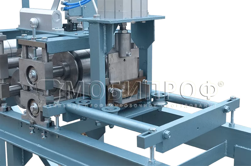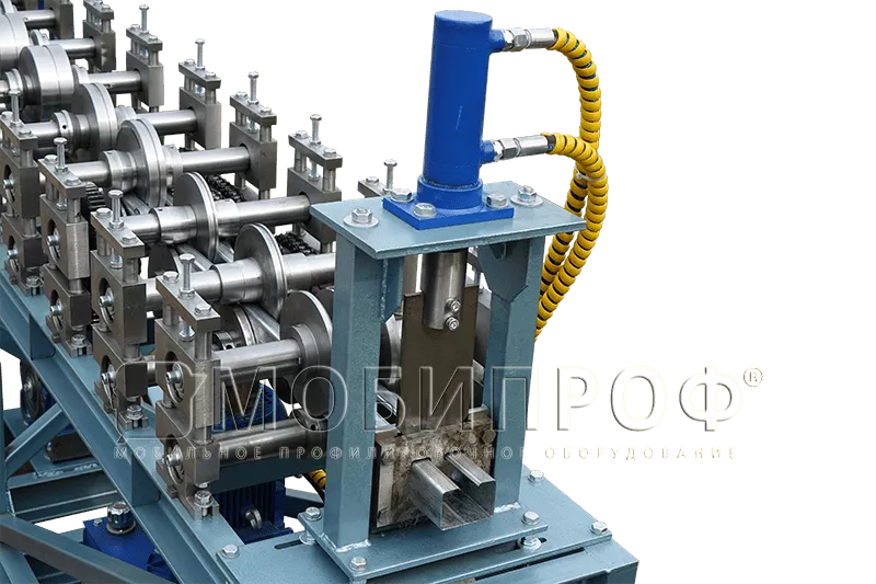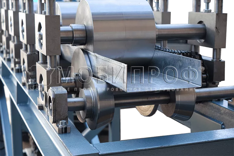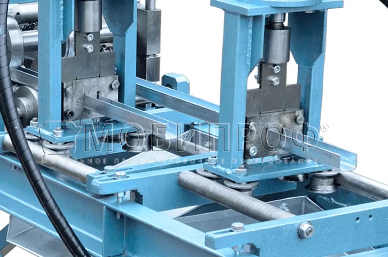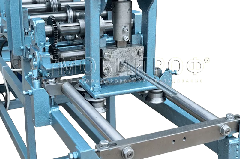 Заготовки для изготовления П - образного профиля должны быть предварительно нарезаны на полосы нужной ширины или смотаны в рулон (штрипс). В последнем случае линия профилирования с - профиля может дополнительно оснащаться фасонной гильотиной с пневматическим или гидравлическим приводом (в зависимости от толщины металла) для резки готового продукта на выходе и автоматической системой управления (АСУ), позволяющими значительно увеличить скорость производства.